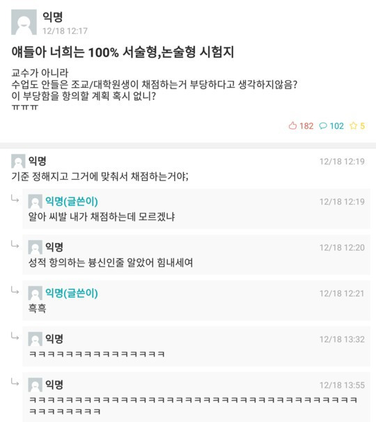 100% 서술형 답안지 교수가 채점 안하는거 부당하지않아?.jpg