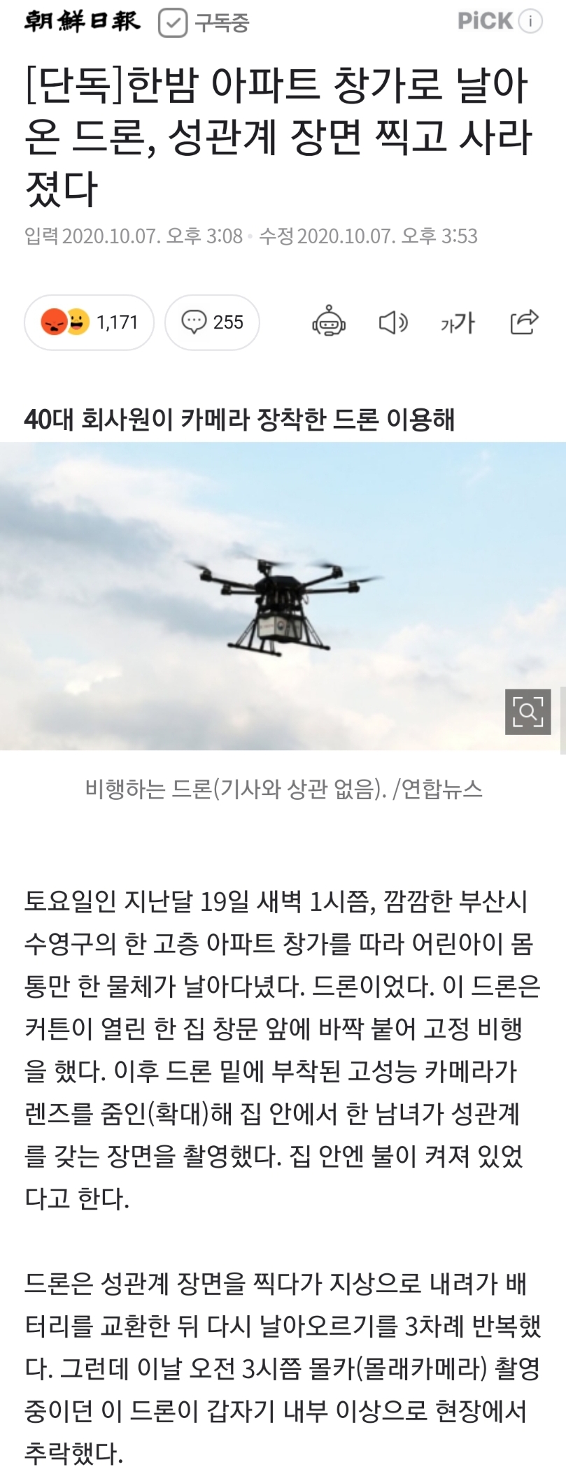 아파트 창가로 날아온 드론