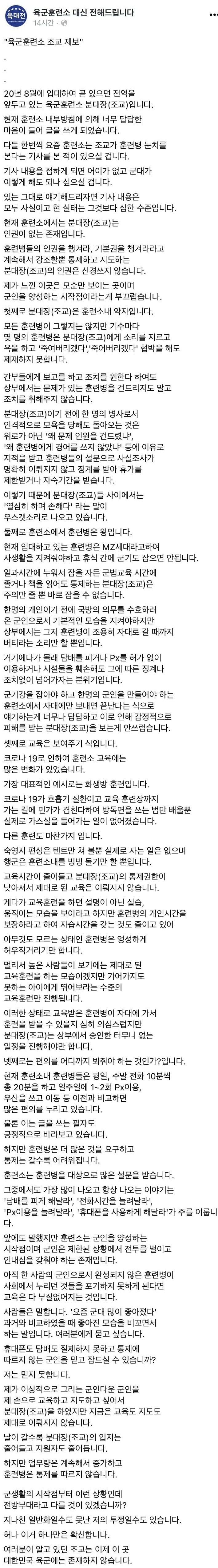 요즘 육군훈련소