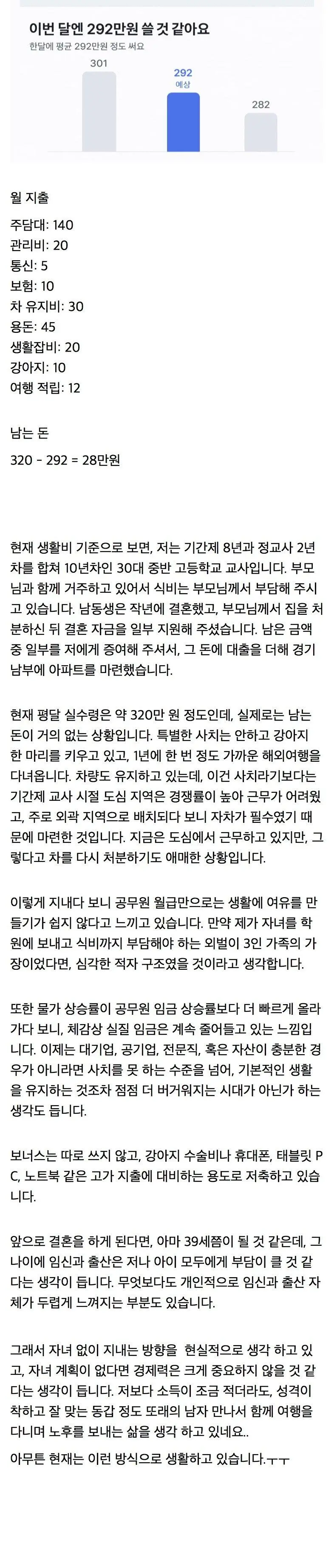 실수령 320만원 여교사 생활비